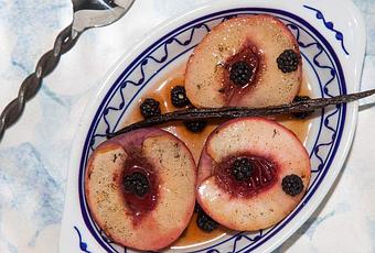 - يخلط العسل مع عصير البرتقال وبذور وعود الفانيليا ويضاف إلى النكتارين "الشهدية "