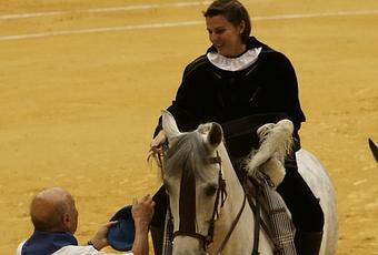 C'est par le sourire de cette alguazil que l' on commence ! Oui les toros sont revenus dans les arènes d' Illumbe !