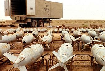 Photo non-datée de bombes aériennes chimiques en attente de destruction par l'Unscom à Muthanna, dans le sud-est de l'Irak I ©Unscom AFP/ Archives