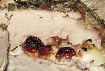 Couper des tranches de chèvre et en garnir l'intérieur.