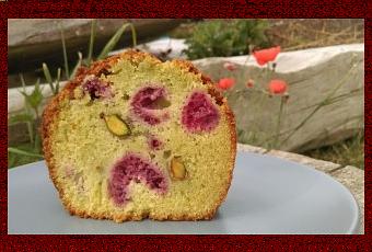 Voici une recette avec des fruits de saison, le Cake sans gluten pistache framboises !