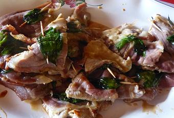 Une adaptation maison d'une recette traditionnelle italienne. Mais avec l'utilisation de jambon cru du sud-ouest à la place du jambon de Parme (je n'en avais pas sous la main ici, en Périgord !) et de feuilles de basilic au lieu de sauge.
