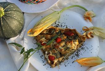 Ce soir, je vous propose une recette de quiche à la courgette, tomates cerise, feta et le tout bien relevé ;)