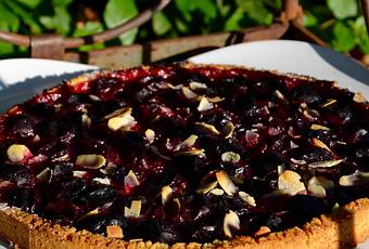 Ranger les prunes sur le fond de tarte partie bombée vers le haut, le plus serré possible.