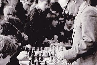 Sauriez-vous reconnaître ce champion en simultanée, auteur du fameux livre L'Art du combat aux échecs au sujet du tournoi de Zurich 1953 ?