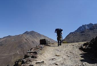 Donc en fait, le premier jour vous partez d'environ 3000 m d'altitude pour monter jusqu'à environ 5 000m d'altitude, soit + 2 000m de dénivelé. Le sac de 10 kilos que vous avez sur le dos avec la tente, les sacs de couchage et la bouffe, il vaut mieux s'imaginer qu'il n'est plus là !