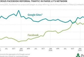Les médias se sont toujours intéressés à Google pour obtenir du trafic. Via la recherche naturelle évidemment, mais aussi et surtout via Google Actualités. Mais depuis quelques années, une autre source est venue compléter l'arsenal d'acquisition de trafic des médias : les réseaux sociaux. Et il semblerait que désormais, ce soient eux qui drainent le plus de trafic vers le sites médias, via Facebook principalement. Parse.ly a étudié les sites référents de 400 médias web (dont Mashable, Eurosport, Fox News, Reuteurs, Slate, The Atlantic, The Next Web, Upworthy…) et constate que depuis le mois de juin 2015, Facebook est devenu la source de trafic N°1 devant Google.