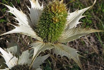 Le Panicaut géant (Eryngium giganteum) est une grande Astéracée blanc argenté, aux feuilles moyennes cordiformes, inflorescence allongée cylindrique et involucre à grandes bractées triangulaires. C'est une plante obsidionale, d'origine caucasienne, très rare en Lorraine où elle a été apportée par les troupes russes débarquées en France en 1916 (Plantes obsidionales, François Vernier, Vent d'Est ed. 2014).