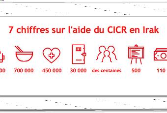 Voici une petite infographie sur les opérations du CICR en Irak de janvier à juillet 2015. (Passez le curseur sur chacun des points rouges)