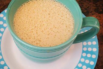 Le tout passé au mélangeur jusqu'à l'obtention d'un mélange onctueux qui rappelle le latte.