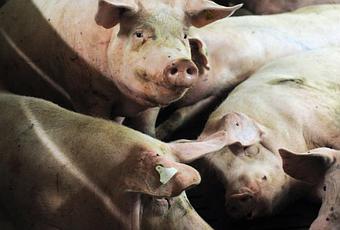 Des porcs dans un élevage à Ploneour-Lanvern (Finistère), le 11 août 2015. - FRED TANNEAU / AFP