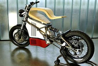 E-Raw est un concept de moto électrique imaginé par le designer français Martin Hulin. La technologie et les matériaux utilisés sont innovants. Le designer y a intégré des pièces de bois. A l’image de la selle de bois réalisée à l’aide de 80 feuilles de bois lamellé collé puis fixées sur un châssis tubulaire métallique. Elle est à la fois souple et rigide.