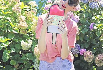 Hello ! I'm slowly getting back into the swing of work after vacation season, even if mentally I'm really still on holiday. I couldn't help but fall in love with this sorbet-colored popsicle clutch from New Look. It's just good enough to eat, great for feeling those vacation vibes. I put it together with a raspberry top with fringe detailing on the shoulders, and a lilac-coloured floral skirt with broderie anglaise-like detailing. I hope that this colorful look that we shot in front of the hydrangeas will please you all ! xx Emilie