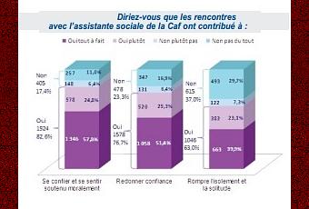 En 2014, pour la première fois, la CAF a mené une enquête de satisfaction par questionnaire auprès de 2 500 allocataires bénéficiaires d'une offre d'intervention de travail social, assurée par un travailleur social de leur caisse d'Allocations familiales (Caf).