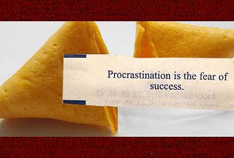Aujourd'hui, alors que je mangeait un biscuit chinois, j'ai lu cette maxime: « Tergiverser, c'est avoir peur de réussir ». Je ne suis pas d'accord avec cette idée. Peut-être, que cela s'applique à certains individus et dans certaines situations extrêmes, mais certainement pas à moi.Quand je remets quelque chose à demain c'est que j'ai trop peur de me planter si je devais le faire immédiatement. Point final !