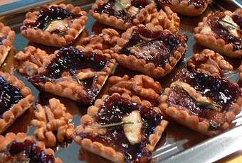 Etalez un peu la pâte feuilletée, avec un petit découpoir, faire plusieurs cercles dans la pâte, les disposez dans les moules à minis tartelettes. A l'intérieur, mettre une petite cuillerée de confiture, puis disposez dessus un petit morceau de chèvre, quelques brins de romarin et mettez au four pendant 15 mn.