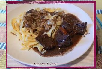 un bon bourguignon dont la viande a marinée pendant 12 heures, quoi de meilleur, une viande bien moelleuse servie avec des pâtes fraîches...
