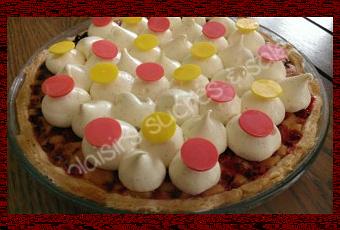Montage de la Tarte aux groseilles amandes Chantilly au chocolat blanc :