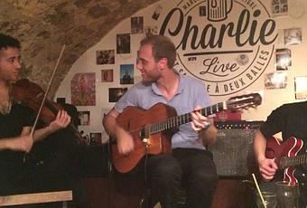 Si vous demandez à Brad Brose, venu des États Unis, pourquoi il joue du jazz manouche, il vous répondra qu’il joue de la guitare, qu’il joue du jazz et que le plus grand guitariste de jazz est pour lui Django Reinhardt. Il ajoutera peut-être que s’il jouait de la trompette, il préfèrerait Louis Armstrong… Mais c’est la guitare. Et la guitare acoustique. C’est avec cet instrument qu’il entre en dialogue, des sonorités assez douces qui peuvent s’accorder à d’autres instruments sans perdre leur capacité d'expression propre. C’est ainsi qu’on arrive à cet ensemble de cordes, composé d’une ou deux guitares et d’un violon, qui est considéré comme la base du jazz manouche, une musique qui peut aisément se déplacer grâce à la légèreté des instruments, et s’installer où bon lui semble. L’accord nait entre cordes pincées et cordes frottées, mesures tenues et mesures suspendues. Et son intérêt pour Django Reinhardt l’encourage à ne pas répéter mécaniquement les airs connus, mais, en s’appuyant sur l’histoire de l’instrument et de cette musique, à improviser et composer ses propres mélodies. C’était d’ailleurs essentiellement les compostions de Brad Brose qui étaient interprétées ce soir-là à Charlie, bar du 12e arrondissement parisien, par le trio Cat-a-Strophe, joli jeu de mot associant le joueur de jazz et une poésie que chaque auditeur peut se composer à l’écoute de ces airs. C’étaient des rythmes assez joyeux, comme les battements du coeur, parfois teintés de douceur, et, sans instruments à vent, laissant entendre ici un éclat, là un soupir. La complicité indispensable entre les trois musiciens, Brad Brose (guitare), Baiju Bhatt (violon) et Arsène Charry (guitare) se traduit par les sourires qu’ils échangent en jouant, par l’attention portée à chacun, le plaisir d’être ensemble et de partager la musique également avec les yeux. Le set s’est terminé sur un air qui ne m’a pas lâché dans le soir des rues estivales de Paris.