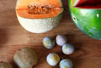 Laissez vous tenter par ce jus à base de fruits frais : melon, pastèque, kiwis et prunes.