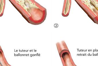 L’intervention coronarienne percutanée (ICP, autrefois appelée angioplastie et pose de tuteur) est une intervention non chirurgicale effectuée à l’aide d’un cathéter (un long tube flexible) destinée à mettre en place une petite structure appelée tuteur afin de maintenir ouvert un vaisseau sanguin du cœur rétréci par l’accumulation de plaque, un problème appelé athérosclérose (...).Source iconographique et légendaire: http://www.fmcoeur.com/site/c.ntJXJ8MMIqE/b.3832109/k.A57D/