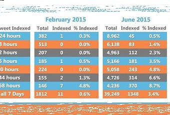 Part des tweets indexés en février et en juin (source : Search Engine Land)