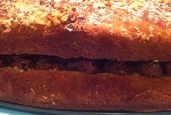 J'ai torréfié des noisettes et les réduit en grainsJ'ai parsemé ma brioche de mes noisettes et mis ma brioche à cuire: four 180 pendant 20 minutes.