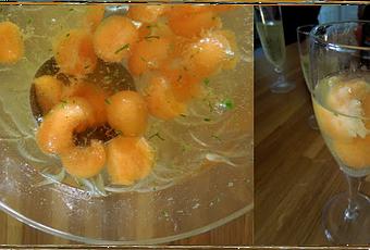 Préparer le cocktail : placer les billes de melon dans le contenant, ajouter 10 cl du sirop de melon infusé puis le zeste et le jus d'un citron vert. Verser une bouteille de Champagne bien frais et servir aussitôt.