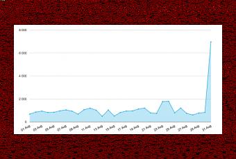 Sur Twitter, par exemple, Le Gorafi comptabilise en moyenne 1500 tweets par jour. Lundi dernier, les statistiques ont explosé avec près de 7000 tweets !