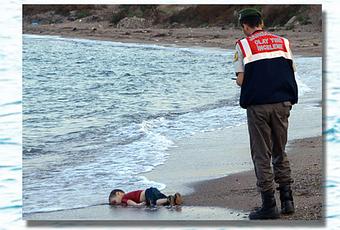 Le petit corps au pied de l’écume des vagues Le visage tourné vers le sable éternel L’humanité s’émeut mais la raison divague Sur la planète bleue des morbides querelles.