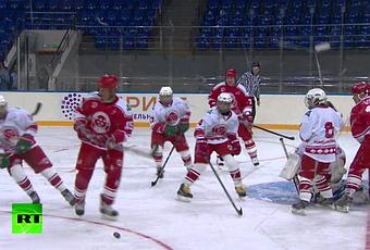 Quand le hockey et la propagande font bon ménage. Je parle bien évidemment de la Russie où Vladimir Poutine ne sait plus quoi faire pour entretenir le culte de l'homme parfait. Dommage qu'aucun junior n'ait osé lui faire une bonne mise en échec contre la bande. Il aurait rendu service à bien des personnes sur la planète... A noter que l'équipe du président russe, qui comptait dans ses rangs Malkin, Ovechkin ou encore Bure a remporté le match contre les juniors 9-5.