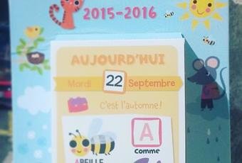 Donc depuis la rentrée nous avons un nouveau rituel tous les matins c’est de détacher la page d’un éphéméride. Évidemment ce n’est pas n’importe quel éphéméride c’est un spécial pour les enfants publié par Gründ, Mon Premier Calendrier.