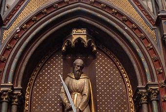 Statue peu commune, car la plupart nous le montrent tenant un lys ou un bâton terminé par un lys, emblème de pureté et allusion à un épisode d'un évangile apocryphe associé à son mariage. D'autres statues le présentent tenant l'enfant Jésus dans ses bras. Plus rares sont celles où il tient une équerre ou un compas. Mais la bisaiguë est très rarement représentée.
