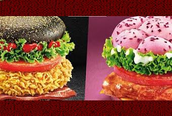 KFC Chine a dévoilé ses nouvelles offres de menu, y compris deux des hamburgers assez bizarres prospectifs. Alors qu'un bun noir est assez choquant, vous êtes probablement plus prises que par rose, marshmallowy concoction sur la droite: Selon les nouvelles site chinois Le Nanfang, les nouveaux burgers KFC sont appelés les «Black diamond lard poulet épicé jambe hamburger» et le «Rose fromage poulet rôti jambe hamburger." Les hamburgers au détail pour 2,80 $. ci-dessous dit le nom de "diamant noir" signifie la même chose comme il le fait qu'elle ski ou le snowboard, aka "un niveau expert» seulement. Sourcefed a ajouté que le fromage à la rose est également pas vraiment comme "rose" que cela puisse paraître, que le nom vient apparemment de la couleur rose des petits pains. Mystère, résolu.