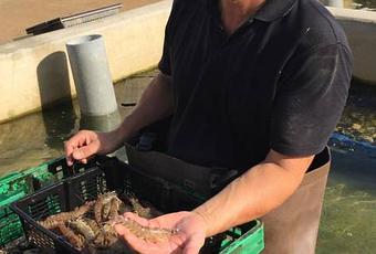 Frédéric Voisin, montrant une de ses crevettes bio qu’il élève dans l’Île de RéIl est 9 h. Les canards, aigrettes, ibis et autres cormorans traversent le ciel bleu de la Pointe du Groin, à Loix, petit village au bout de l’Île de Ré. J’ai rendez-vous au cœur des marais salants, avec Frédéric Voisin, ostréiculteur et pénéiculteur (éleveur de crevettes) surnommé ici l’équilibriste, l’irréductible... !À 56 ans, il a déjà un long parcours derrière lui ; architecte, ébéniste, exploiteur forestier, diplômé d’écologie humaine et ingénieur. Toujours passionné de produits nobles, il est le seul sur l’île (ils sont deux en France) à produire des crevettes et des huîtres bio.DES VERS MARINS PLEINS DE RESSOURCES« Les crevettes, c’est plutôt tropical pour la simple raison qu’il faut une eau à plus de 15°. C’est un très gros marché mondial dont l’élevage a commencé dans les années 1970. Les trois quarts, plusieurs millions de tonnes, proviennent de Chine ou de Thaïlande. Je ne dis pas qu’elles sont moins bonnes que les miennes, elles mangent des choses très différentes, essentiellement des granulés, des farines. Pour les crevettes, le terme générique est gambas, ici je produis la variété peneans japonicus, la crevette impériale et j’ai obtenu la certification bio en 2012 pour l’ensemble de ma production ». Produire des huîtres à Ré, c’est courant, bio, c’était un challenge de plus, mais pourquoi donc associer à cette production déjà bien complexe, un autre produit ? C’est là que l’ingénieur a une idée de génie... Profiter de l’écosystème et faire en sorte que ces deux produits soient complémentaires, indissociables et que l’un rende l’autre meilleur. Mais c’est un travail de fou !Avec comme seul moteur la volonté de respecter la nature et la santé. Dans 4 ha de bassins, il va répandre des algues brunes provenant de ses parcs à huîtres bio. Les algues vont favoriser l’apparition des néréis, des petits vers marins : « Ils jouent un rôle majeur dans le mélange, l’aération, le cycle du carbone, de l’azote dans les couches de sables de mes marais. C’est un processus épurateur extrêmement efficace ! La libération du Co2 est multipliée par 5 et ils débarrassent l’eau de ses produits toxiques (plomb, chrome). Et devinez quel est le met préféré des crevettes : les néréis ! » s’exclame-t-il.À la fin de l’hiver, il va assécher les bassins en laissant la vase et les néréis, il remplit ensuite d’eau de mer filtrée à 0,3 mm. Début mars il introduit les larves de crevettes, 2,5 par m² de bassin provenant d’un écloseur bio à Mornac. Grâce à l’assec, il va se produire peu de temps après la mise en eau un bloom planctonique qui sera maintenu grâce à l’activité des crevettes.Dans ses bassins, il va aussi semer des petites huîtres bio qui vont se régaler du plancton pendant que les crevettes vont se gaver de néréis ! Lorsqu’elles atteindront 15 à 20 g, les crevettes seront nourries en plus de moules fraîches concassées dans... un broyeur de pommes ! Fin juillet elles atteindront 20g, puis 35 g fin septembre et seront vendues sur le marché de la Rochelle. Croyez-moi elles ne restent pas longtemps sur l’étal, les clients en raffolent ! Après toutes ces explications précises, j’en déduis que l’écosystème est respecté, la nature préservée, le bilan carbone épargné et nos palais régalés ! Que demander de plus !En partant Frédéric me raconte que l’an passé, un phoque, attiré par les poissons rejetés à la mer quand il vide ses bassins, était tombé dans un trou d’eau plein d’anguilles. Il en avait tellement mangé qu’il ne pouvait plus ressortir ! Ce sont quatre pompiers qui l’ont tiré d’affaire et transporté à la mer, sanglé sur une civière ! La scène devait valoir son pesant de crevettes !RÉGINE