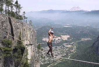 Si toi, simple mortel, souhaite traverser un gouffre, tu prendrais une passerelle ou un quelconque moyen sûr pour arriver sur l’autre bord n’est ce pas ? Spencer Seabrooke est un peu différent car il préfère se taper soixante-quatre mètres sur un fil dans un vide profond de trois cents mètres, et pour le même prix, il a faillit se vautrer et tomber dans le vide. Tout cela se passe dans la Chief Montain, dans le Montana. Pour la petite histoire, il battu le record du monde précédent de sept mètres.