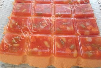 Mixer les tomates et y ajouter la gélatine restante préalablement réhydratée et essorée