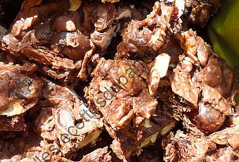 Break the chocolate into pieces. Melt them in the microwave, average power. When completely melted, smooth with a spatula. Then, add the condensed milk, the cornflakes, the cherries, the almonds, the hazelnuts, the raisins and the cranberries.