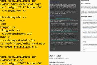 Un éditeur basique HTML qui se présente sous la forme d'une fenêtre munie de deux volets Sur la gauche le code et sur la droite, la vue de votre projet. Chaque modification