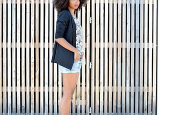 Hello les chéries !! Un nouveau look et je l’ai trouvé à mon goût, avec un petit t-shirt boyfriend Palm tree Imprimé noir et blanc comme je les aime ! Un petit short boyfriend, des converses, un blazer long noir, dans lesquels, je me suis sentie à l’aise, rien que ça oui oui, il m’en faut peu.