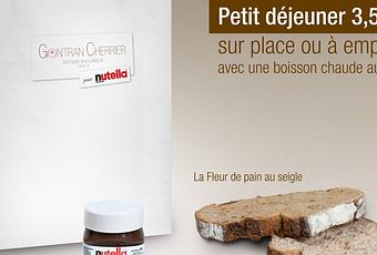 A consommer sur place ou à emporter, dans les boulangeries Gontran Cherrier, ce petit-déjeuner gourmand est composé d’une boisson chaude, d’un petit pot de Nutellini et deux tartines de pains imaginés par le célèbre boulanger au mois de juin dernier :