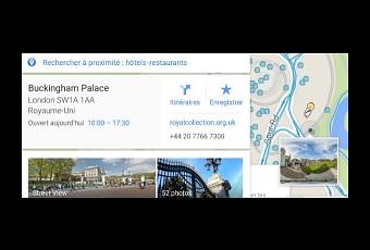 Ensuite, vous optez pour les résultats de Maps. Et vous attendez l'option streetview. Et là, vous verrez apparaître la Reine d'Angleterre et non l'icône habituelle du petit piéton soit Pegman.
