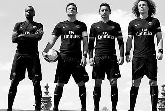 Une chose est sûre, avec un partenariat avec la boutique Colette, bien connu des modeux parisiens, le PSG souhaite poursuivre sa mutation et quitter cette étiquette encore vivace de club pas glamour. Avec sa tunique Dark Light et un positionnement tarifaire très haut de gamme (140€ tout de même), Paris redore son blason. En parlant de blason, même l’écusson du club est légèrement restylé, totalement en noir et blanc (ou 50 nuances de gris pour les demoiselles), avec un fond façon pied de poule.