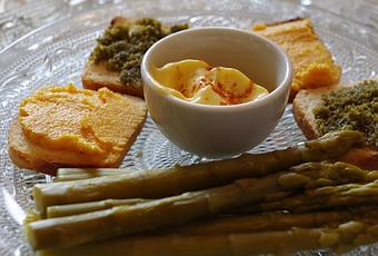 J'ai servi ces toasts avec des asperges vertes pic et un peu de mayonnaise;