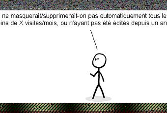 Ça fait maintenant 14 ans qu’on se fait chier à écrire Wikipédia, mais non, visiblement, il faudrait virer tout ce qui n’a pas « suffisamment » de visites.