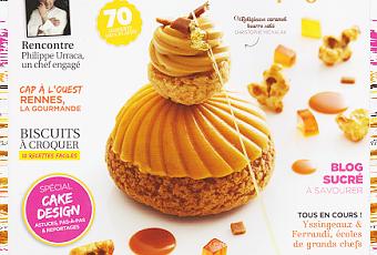 Pour coller parfaitement au thème du numéro, Pâtisseries nous redonne également quelques bases de décoration de gâteaux et cake design. On peut par exemple tout à fait décorer un gâteau avec de la crème au beurre, une belle ganache au chocolat, de la pâte d'amande, ou encore tout simplement des fruits, de la nougatine ou de la meringue italienne. Pour ma part, je pense que je vais essayer le glaçage royal, à base de blancs et du sucre glace, qui est liquide mais se tient tout de même un peu. Pour bien réaliser ses décorations, la rédaction nous conseille de nous équiper, avec une poche à douille, un rouleau à pâtisserie, des spatules, des emporte-pièce, des pinceaux, un bon couteau et...un crayon et une règle, et oui! On nous apprend également à réaliser une décoration "bouquet de roses" sur un gâteau et j'adore : l'effet est magnifique et ça n'a pas l'air trop difficile à faire, avec une crème au beurre, une poche à douille avec un embout étoile, des colorants pour faire un dégradé de rose, et un bon coup de main (il faut dessiner un "e" avec sa poche en fait pour réaliser les fleurs) ;) Il y a aussi une double page consacrée au "recouvrage" d'un gâteau en pâte à sucre (le secret : bien lisser la pâte et l'appliquer consciencieusement sur le gâteau, sans trop tirer) et une autre avec plein d'astuces pour utiliser cette pâte à sucre, données par la blogueuse La Lettre Gourmande : on peut la pétrir pour la rendre malléable tandis que la fleur de maïs est parfaite pour pouvoir étaler la pâte dessus sans qu'elle ne colle ;)