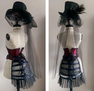 Le relooking de cette forme humaine à l'allure d'élégante est achevée !! Mon grain de folie du moment aura pris beaucoup de mon temps, beaucoup de mon attention...J'espère qu'il attirera les regards ! A vous de découvrir tous les détails... Faux-cul écrevisse bijou "steampunk" chapeau haut de forme style victorien A bientôt !A suivre une collection de bijoux et la création de corsets !