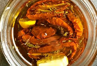 Vous avez plus qu’à les mettre dans un bocal avec deux gousses d’ail coupez en deux et un peu de thym. Recouvrir d’huile d’olive. Et hop au frigo !