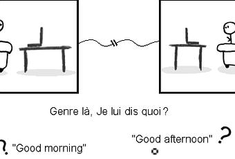 Le soleil vient de se lever ici, donc « good morning » ? …mais c’est l’après midi chez eux donc « good afternoon » ?!