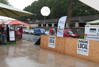 Ce week_end se tenait sur les berges de Seine la "Fabuleuse fête du Manger local en Ile-de-France" dans le cadre des "Semaines du Manger Local". Pas de chance, il a plu quasiment tout le week-end et cela a très probablement découragé un certain nombre de curieux. Imper sur le dos, je me suis armée de courage pour aller jusqu'au Port du Gros Caillou, dans le 7eme arrondissement, où se tenait le marché.
